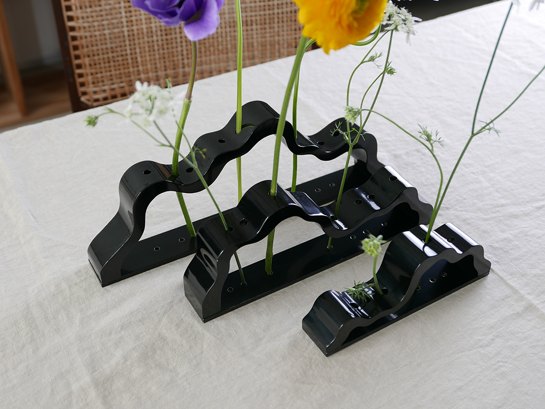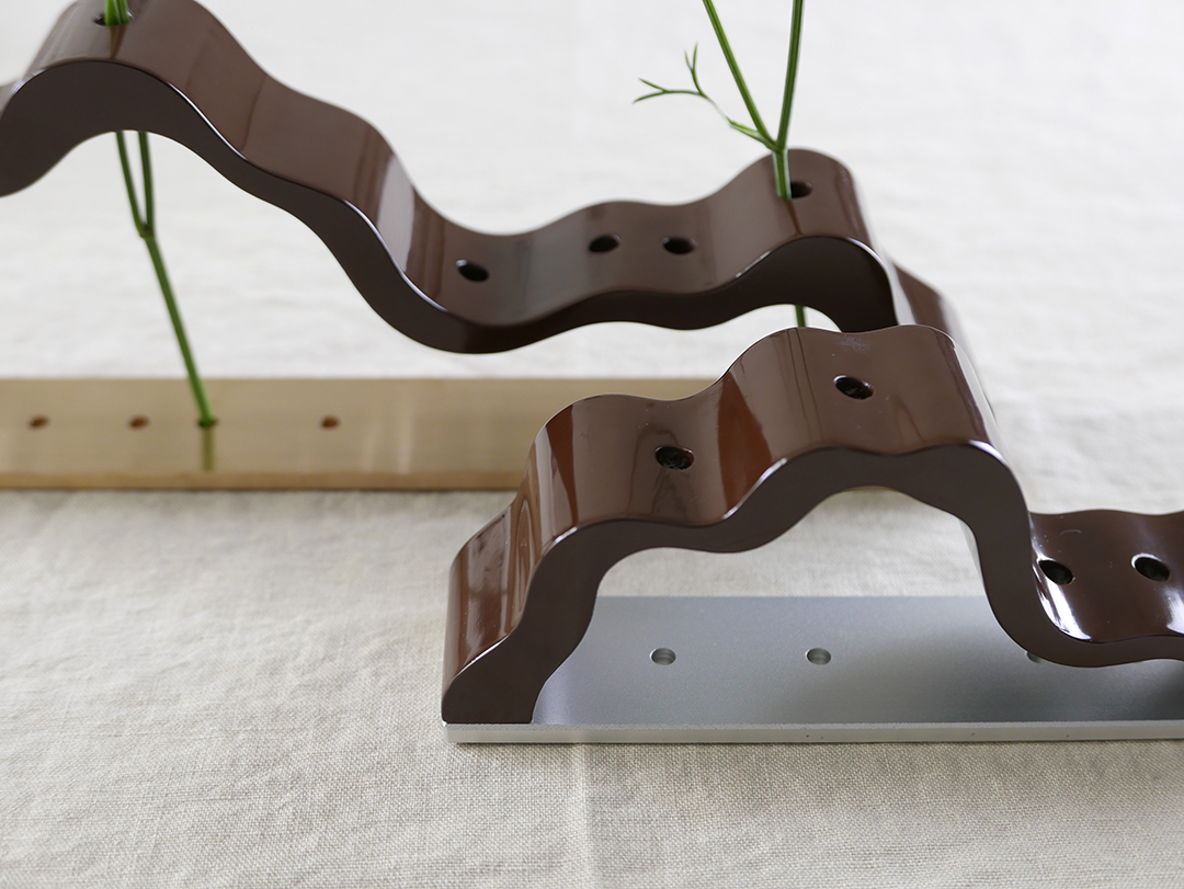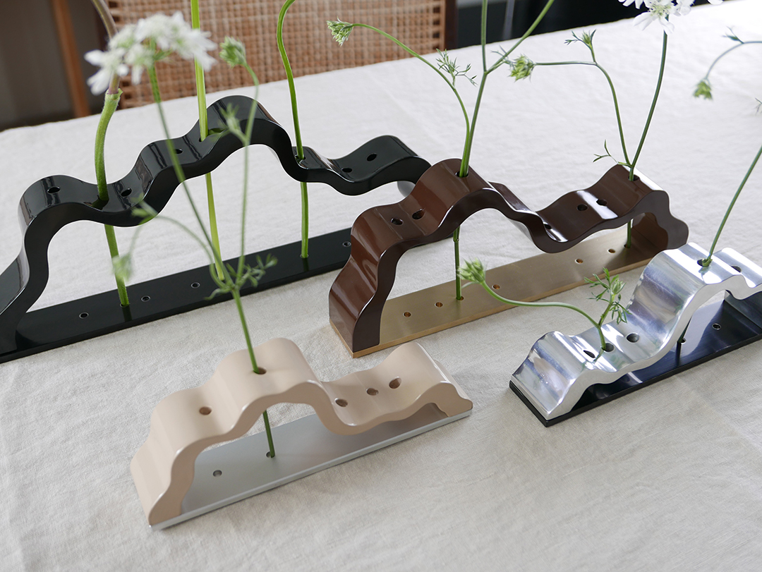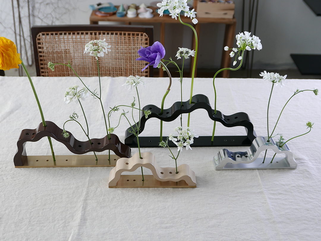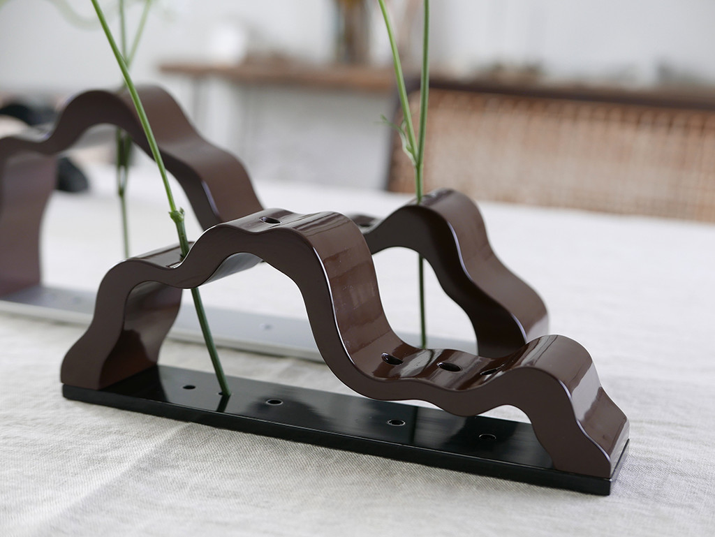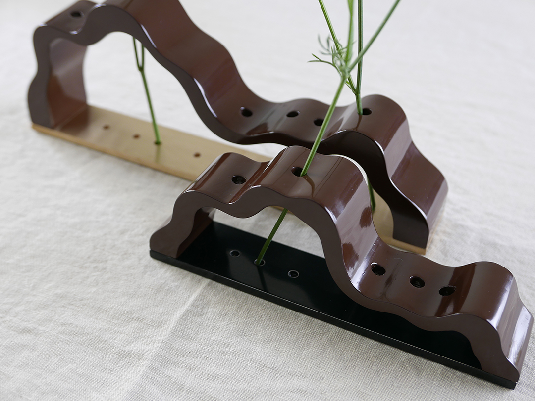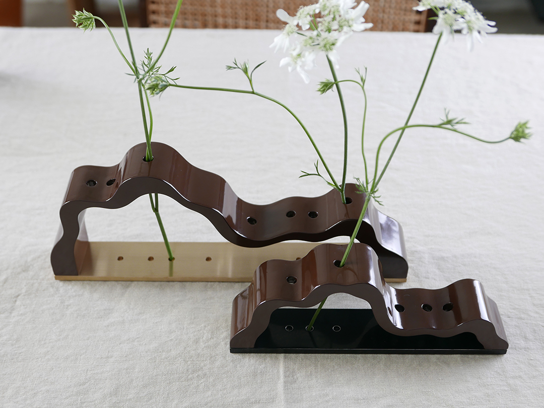 '능선'은 직접 정제 과정을 거친 천연 옻칠만으로 마감을 진행하고 있으며, 기물에 옻칠을 올리고 갈아내는 과정을 9회 이상 반복하며 찬찬히 그 깊이를 더해갑니다.