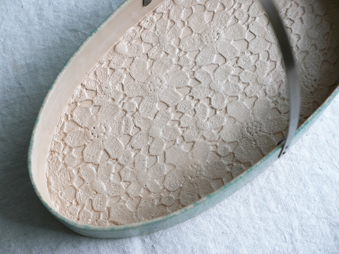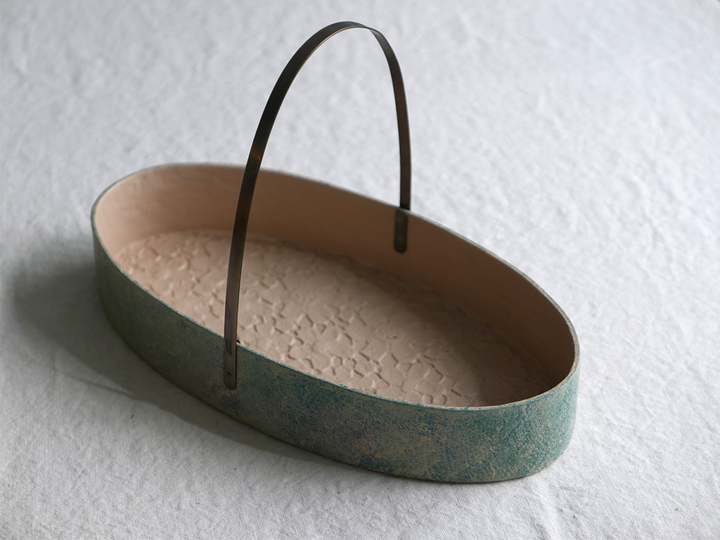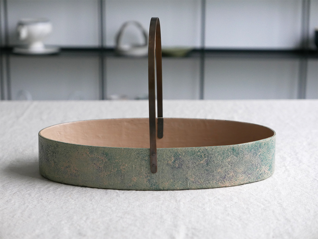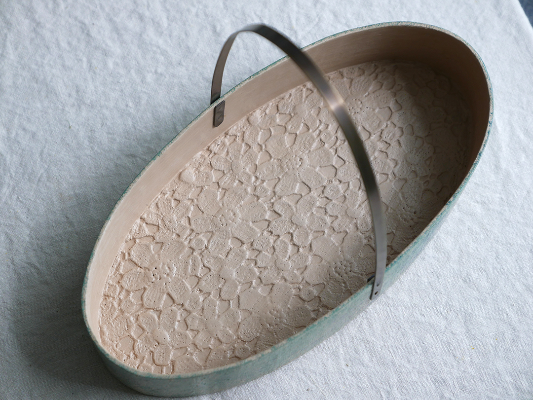 섬유소재와 황토로 바구니의 형태를 만들고 그 위에 여러 번의 옻칠의 과정을 거쳐 작업되는 건칠기법의 기물입니다.