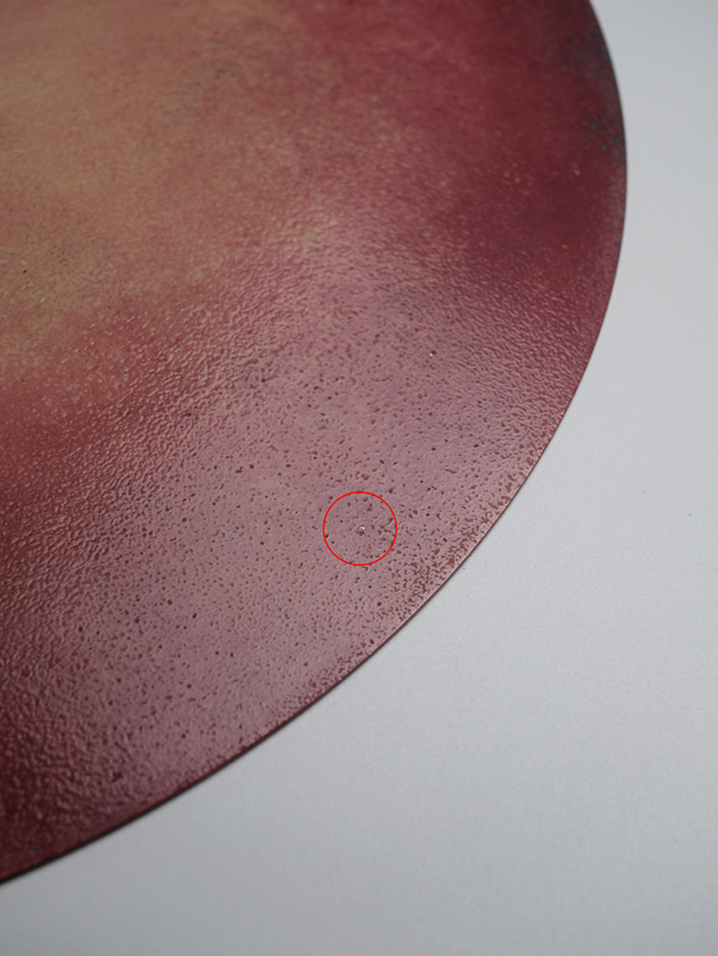 작업 시 옻칠 외 사용하는 소재가 탈락되어 아주 작은 미세한 구멍이 나있어 알루미늄 부분이 보이는 것으로 파악됩니다.