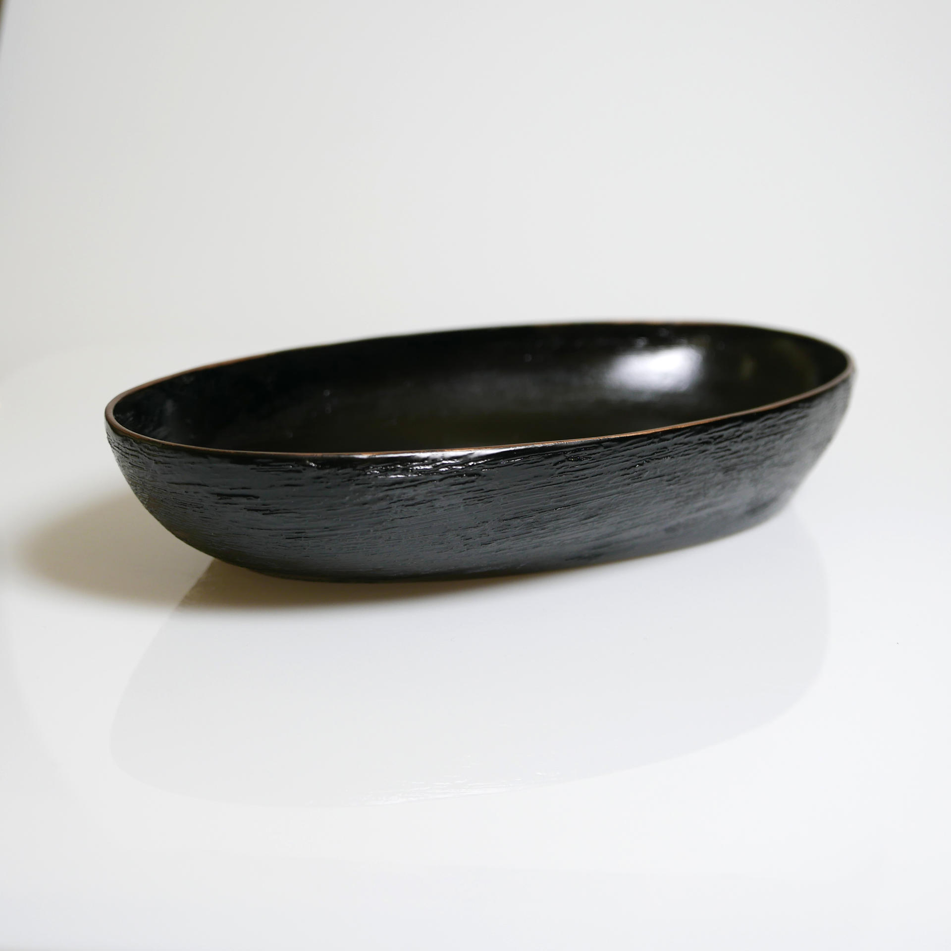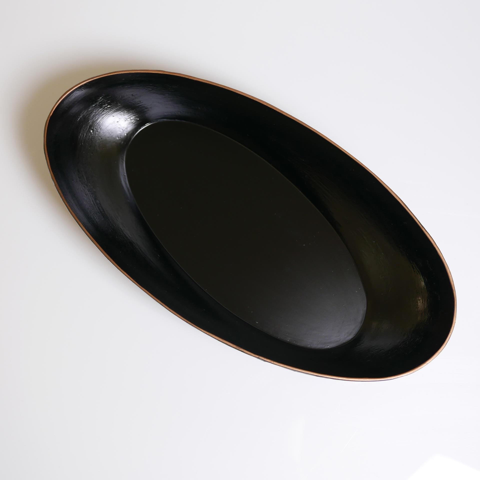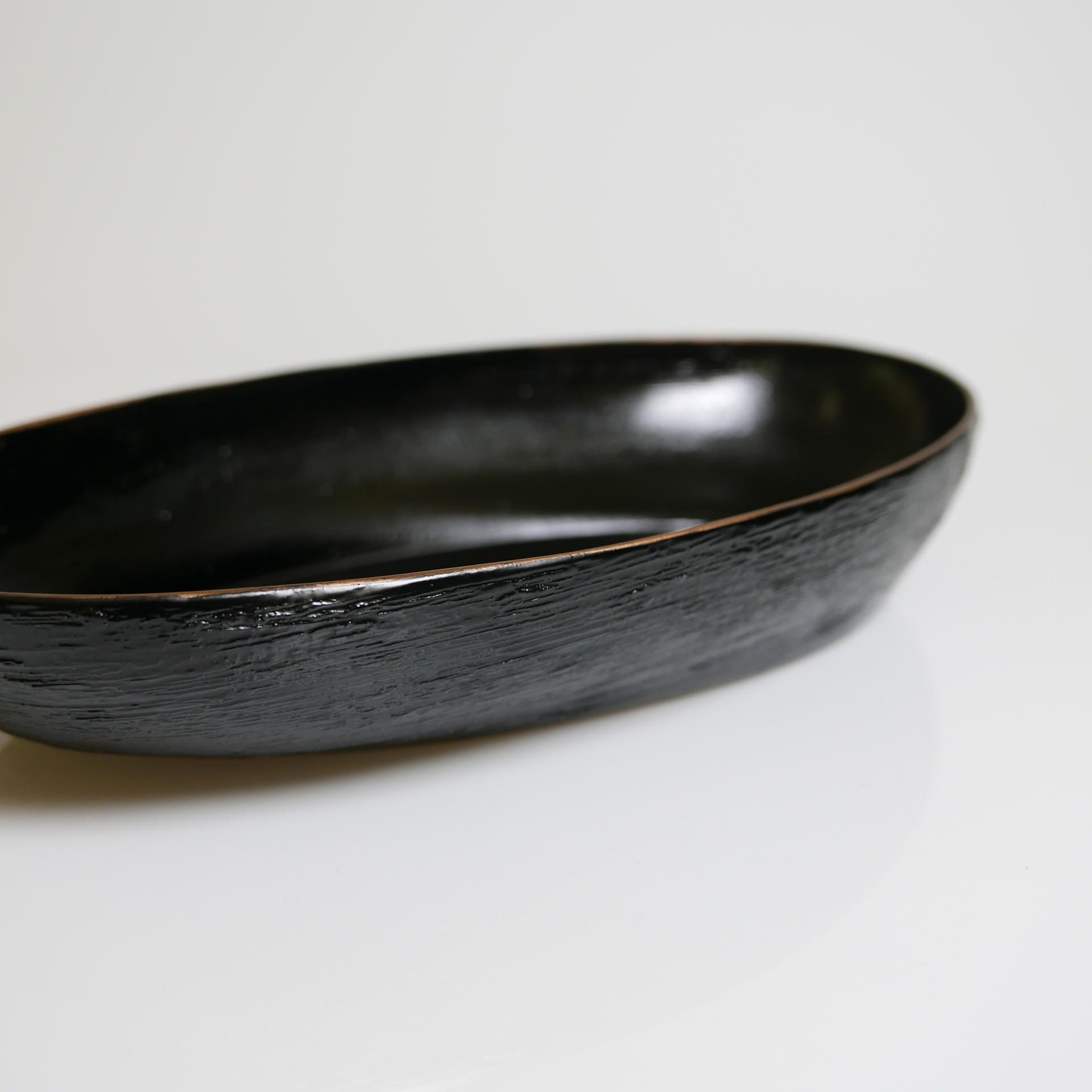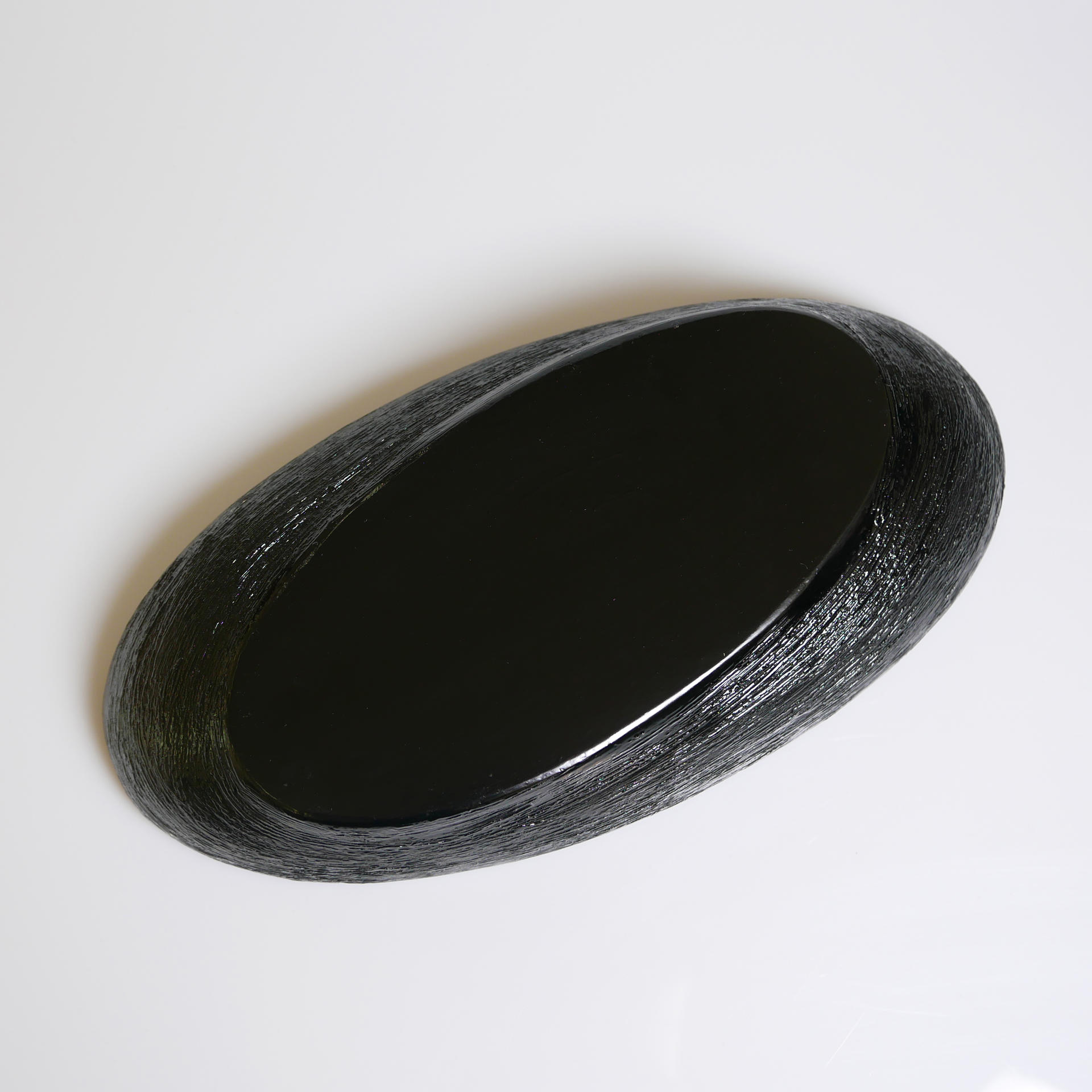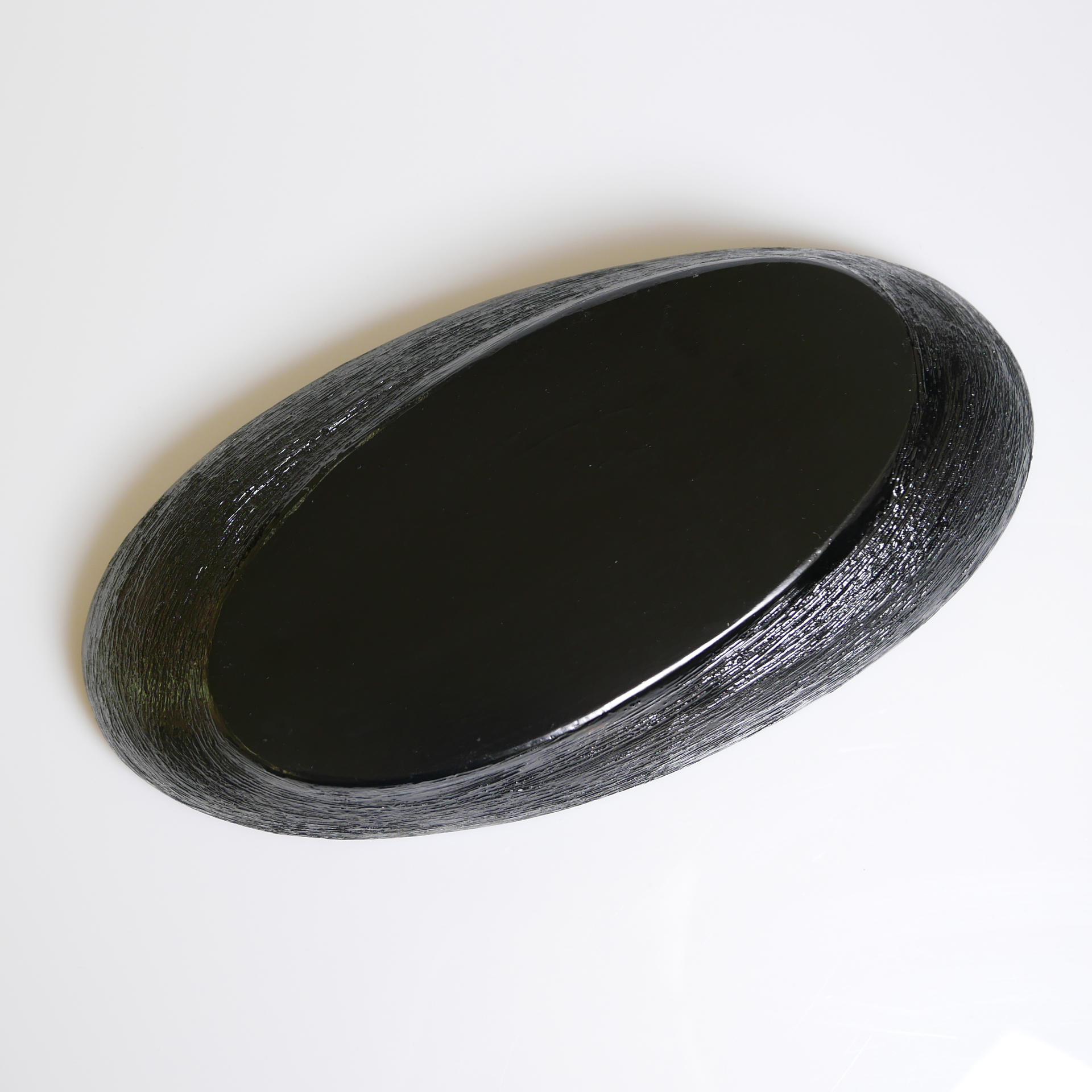 삼베와 옻칠로 형태를 만드는 기법으로 완성된 타원의 옻칠볼입니다.