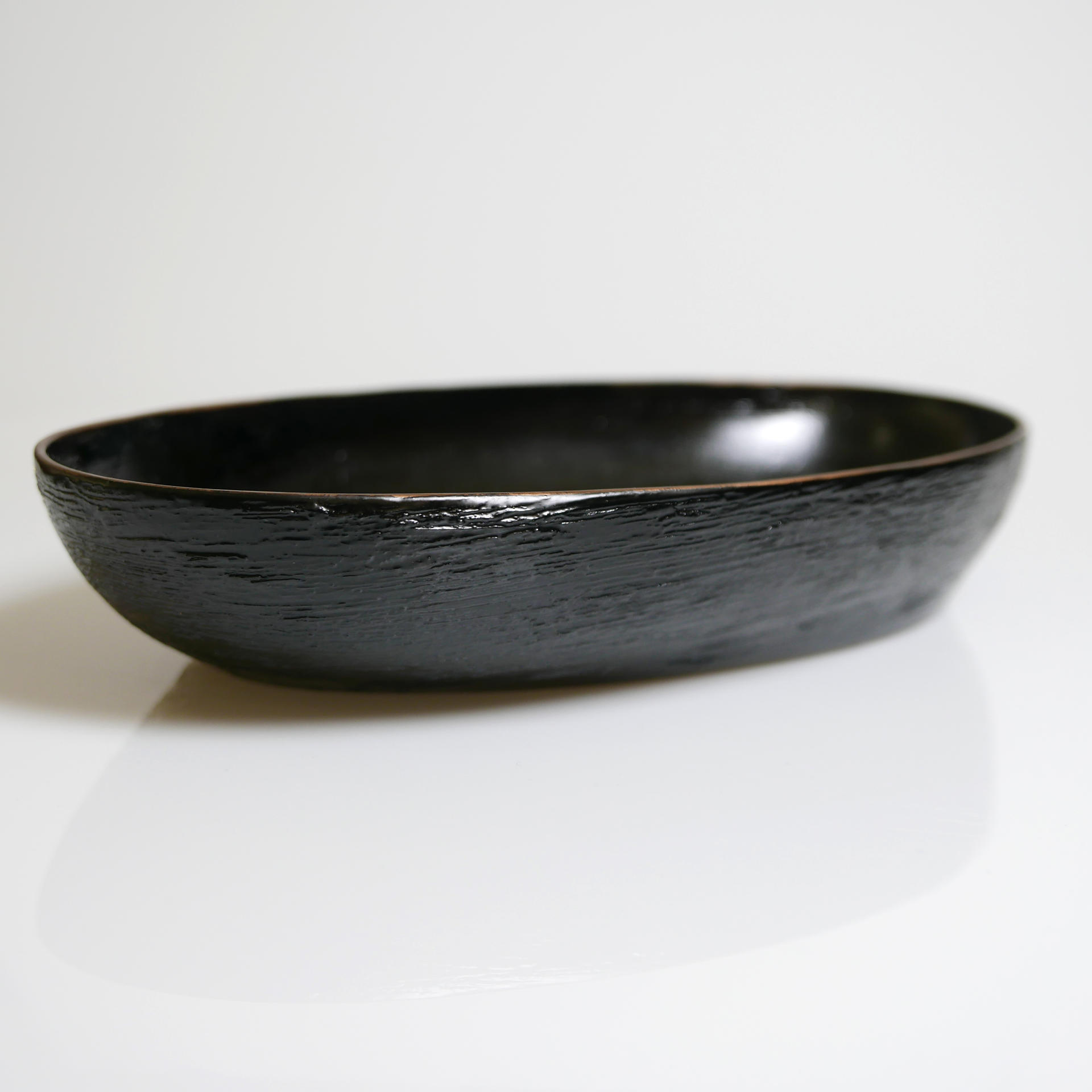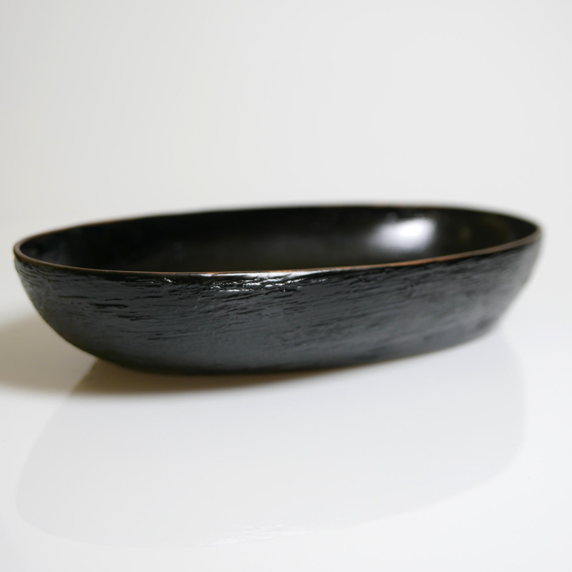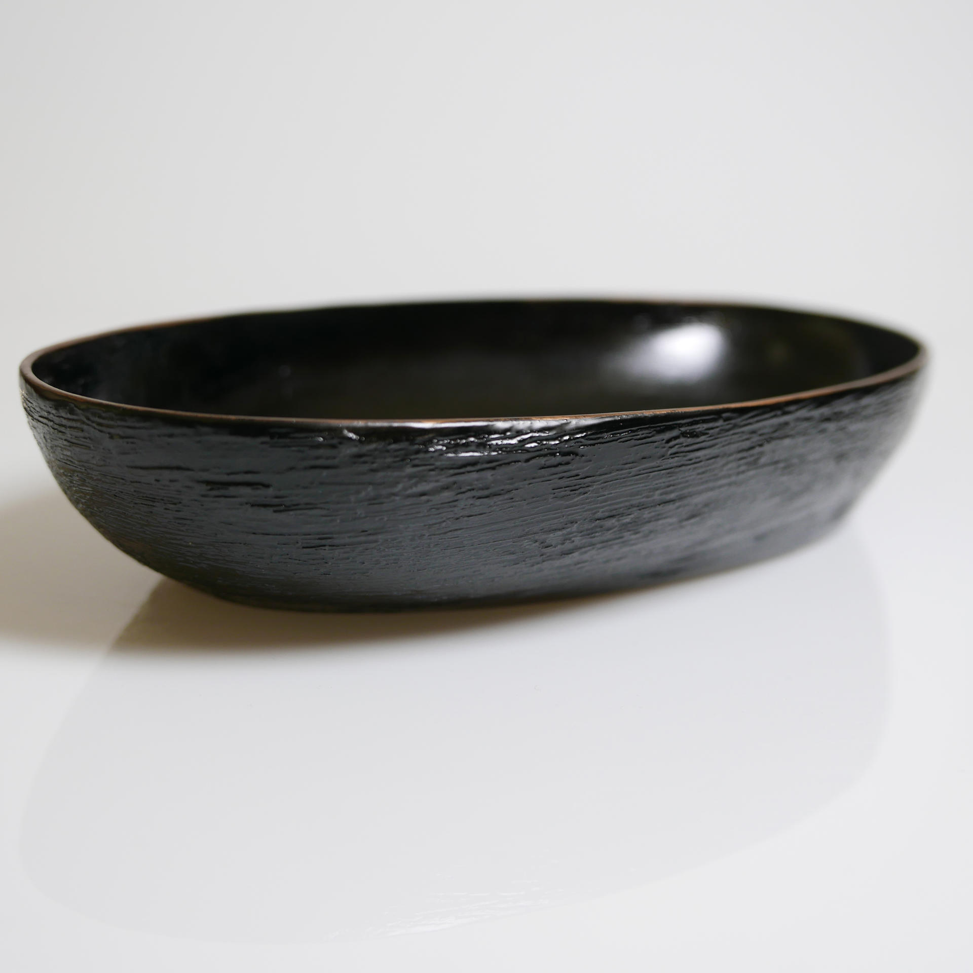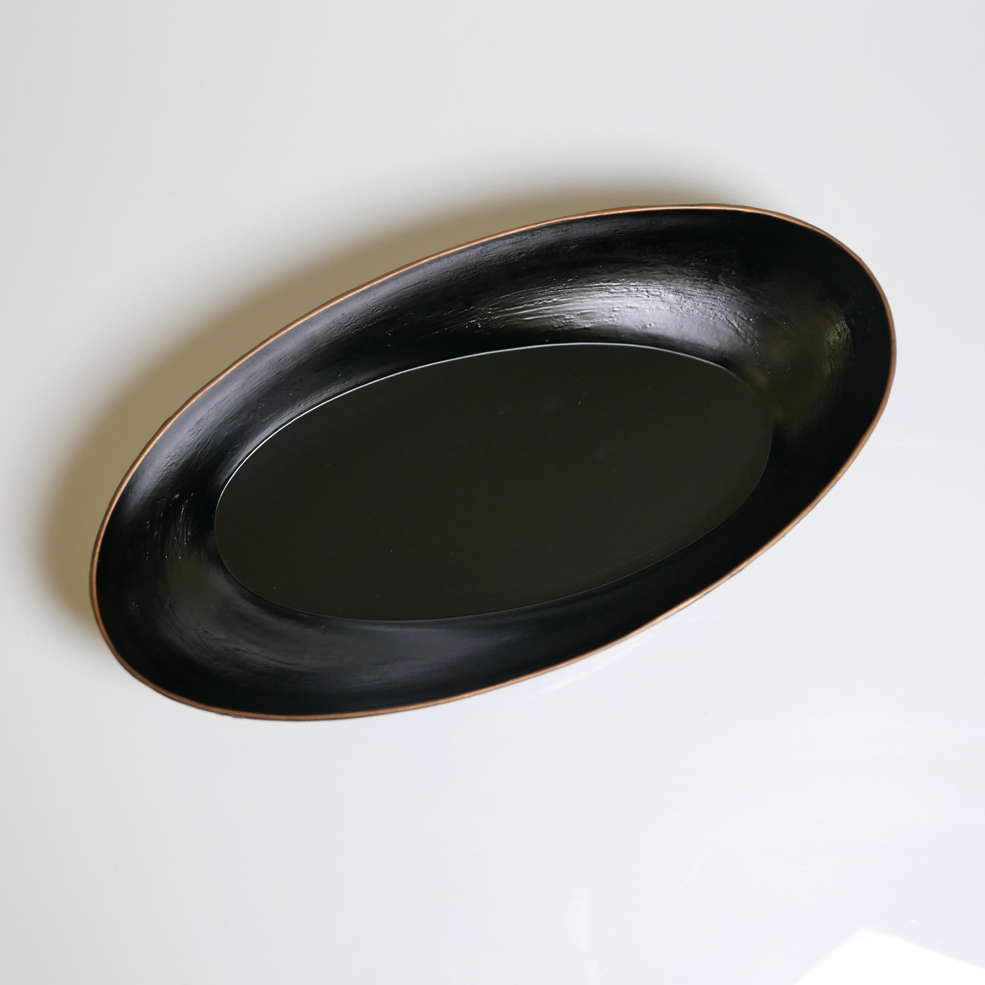 삼베와 옻칠로 형태를 만드는 기법으로 완성된 타원의 옻칠볼입니다.