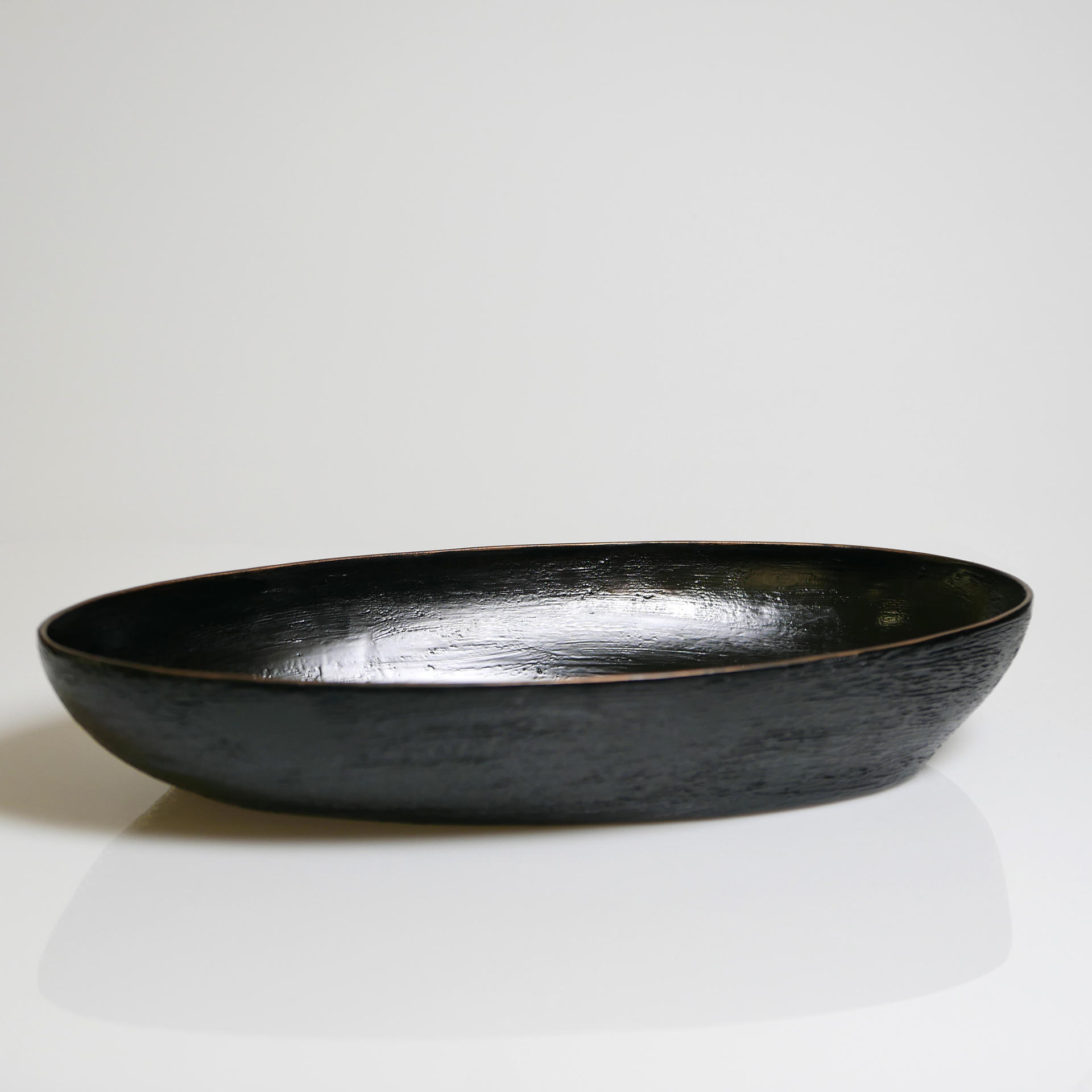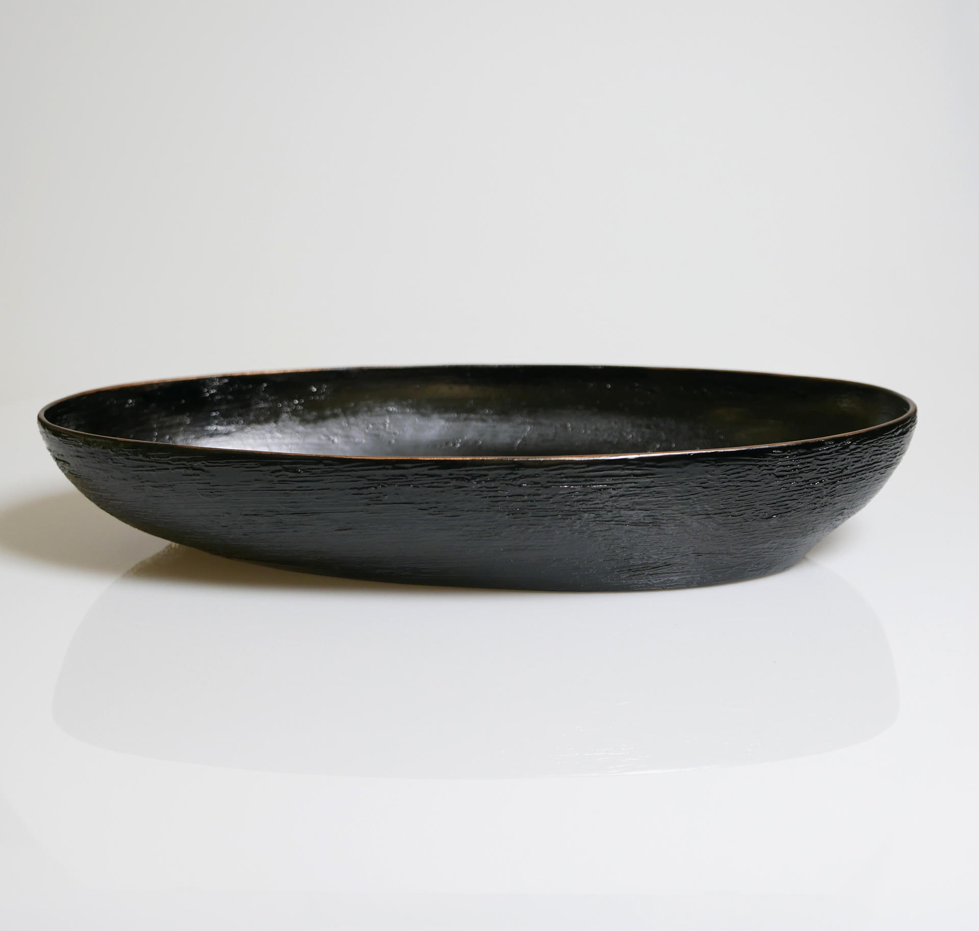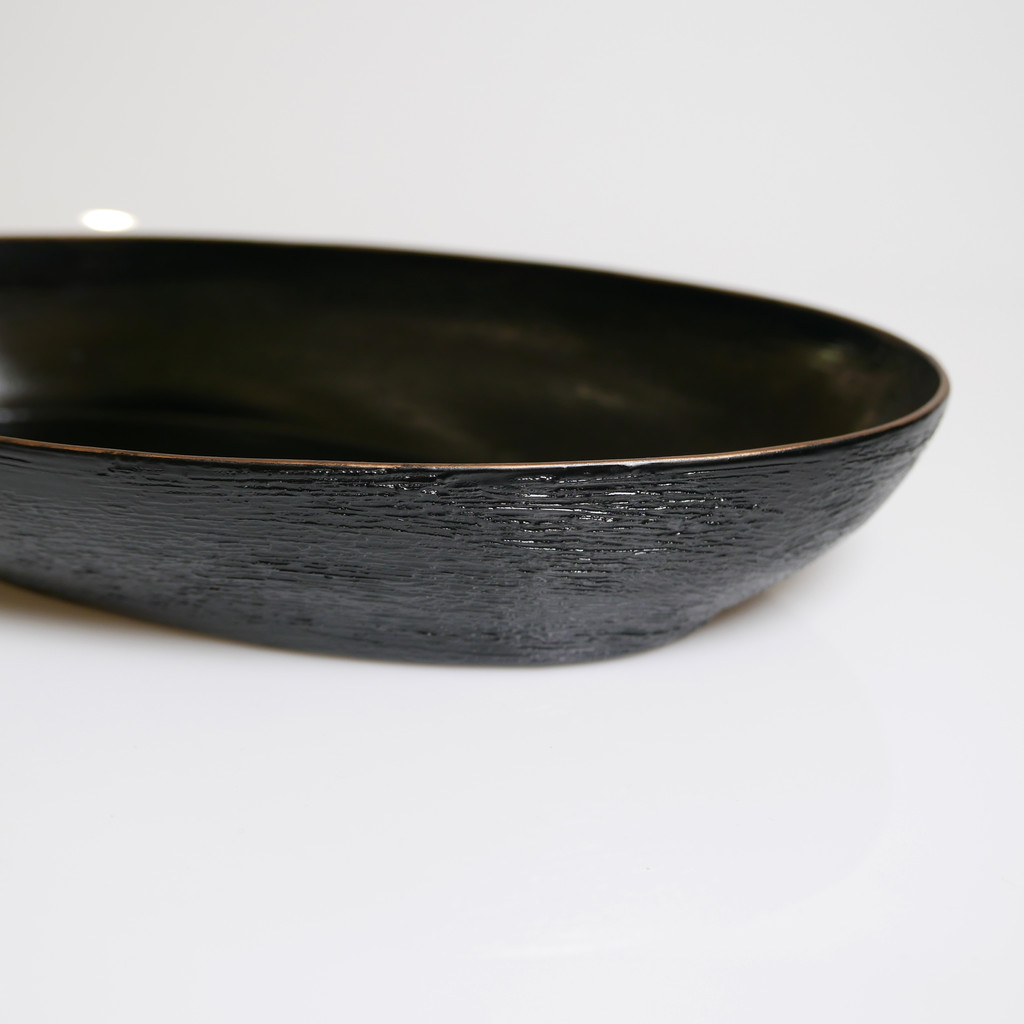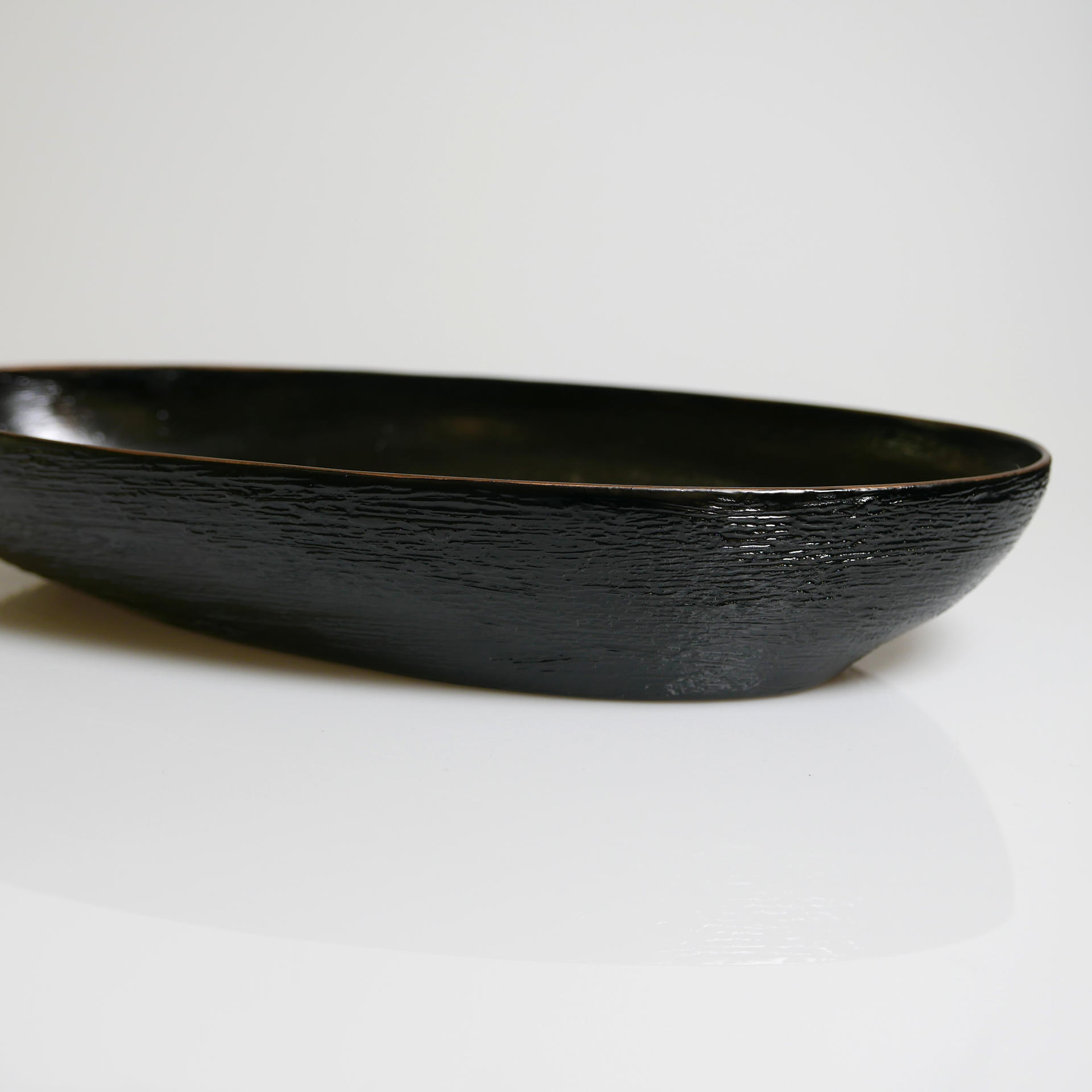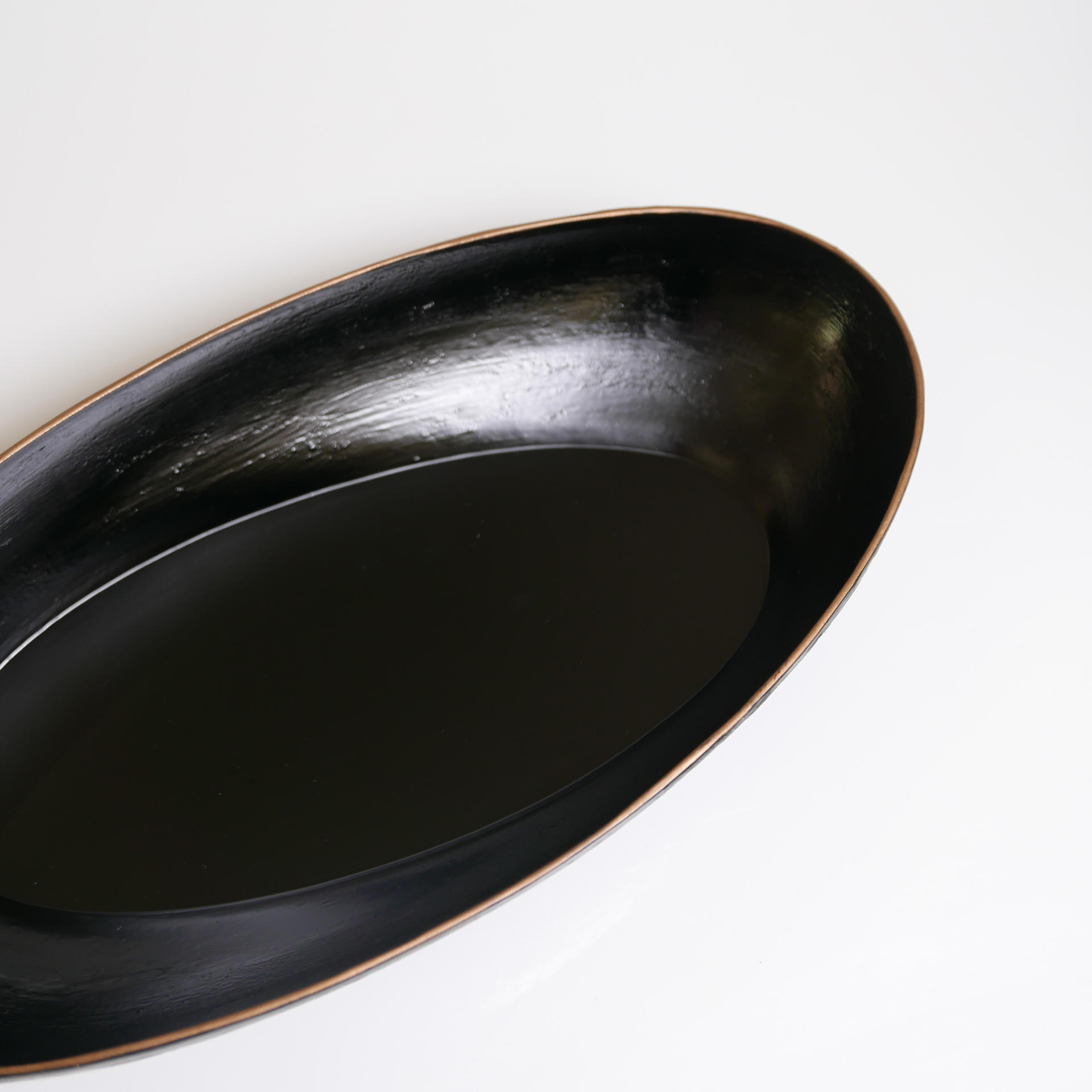 삼베와 옻칠로 형태를 만드는 기법으로 완성된 타원의 옻칠볼입니다.